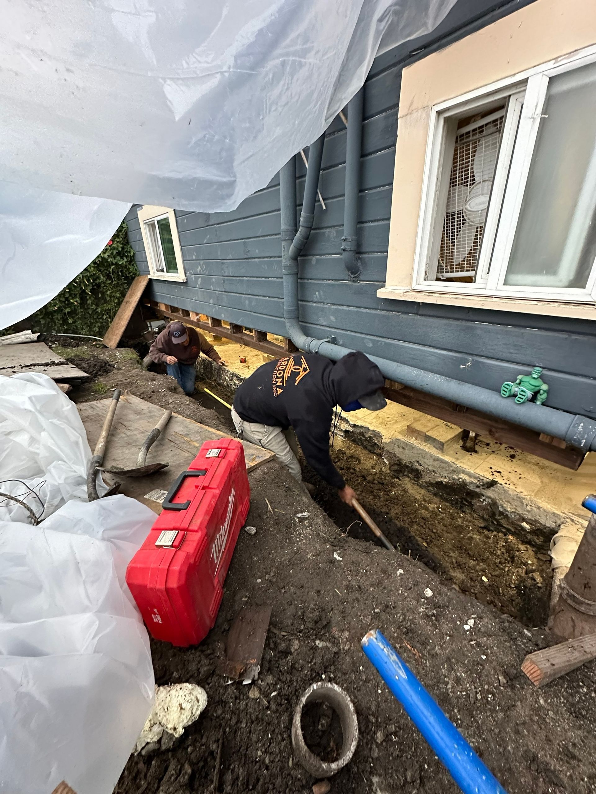 Rene Cardona conducts a free on-site evaluation first, assessing the condition of the foundation, the soil, and shoring scope—how the home will need to be temporarily supported while the old foundation is removed and the new one is built. Cardona provides referrals to up to three trusted structural engineers. The homeowner hires and pays the engineer directly, keeping costs transparent. Once stamped plans are complete, Cardona manages permit submission and city coordination.