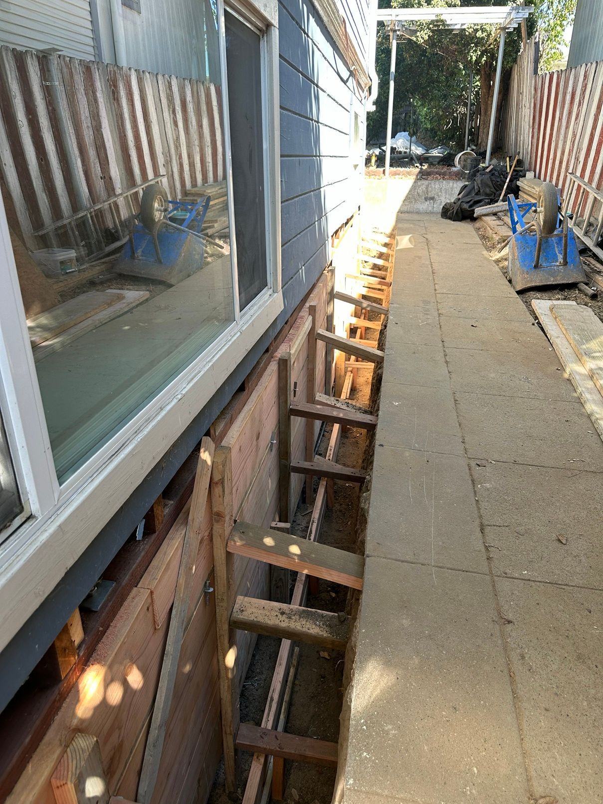 Slab foundations require more concrete volume but simpler shoring. Raised foundations, including pier-and-beam or cripple wall systems common in older East Bay homes, involve more complex support work. Cripple walls (the short framed walls between the foundation and floor) sometimes need full replacement too.